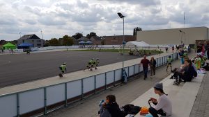 Nous sommes allées à Zemst suite à l’invitation d’Anja Decoster la présidente du Reko Zemst. Avant de parler de la piste, il faut signaler que le stade porte le nom du père d’Anja et qu’elle est championne du Monde du 1500m (s’il vous plait!). C’est dire si on prend le roller de vitesse au sérieux dans la famille. D’ailleurs, c’est comme ça qu’elle nous a vendu la compétition: « une compétition internationale mais familiale ».